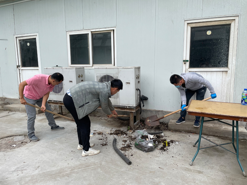 雨过天晴,风和日丽,在所领导和服务中心领导带领下,青年同志们精神奕奕,互相配合,干劲儿十足,积极发扬不怕脏、不怕苦、不怕累的精神,紧抓卫生细节,着眼整体环境,重点对两个球场、温室周边等进行彻底清洁,所区面貌焕然一新。