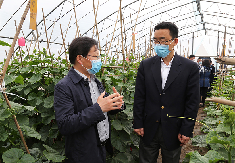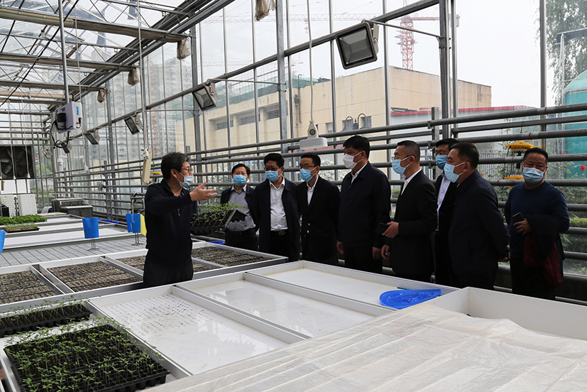 5月9日下午,全国人大外事委副主任陈国民、吉林省长春市九台区区委书记李洪亮一行到摩根体育官网 调研指导,参观所南区温室试验基地,考察蔬菜新品种选育推广、设施栽培技术、工厂化种苗生产技术等情况。中国农业科学院副院长梅旭荣,院办公室主任王晓举,摩根体育 副所长张圣平、卢林纲陪同调研。