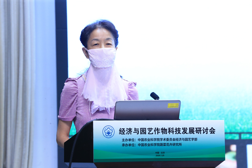 会上,蔬菜所所长张友军首先代表学部向与会嘉宾汇报了学部在贯彻落实总书记“三个面向”贺信精神的近三年科技进展与主要成效,以及“十四五”发展方向和重点攻关选题。北京大学邓兴旺院士和湖南农业大学刘仲华院士分别做了关于“水稻玉米第三代杂交育种技术的研发与应用”及“科技创新与中国茶产业发展”的大会主旨报告。学部下属9所(蔬菜所、棉花所、油料所、麻类所、果树所、郑果所、茶叶所、烟草所、特产所)所长分别做了各研究所发展报告。院士专家针对学部和各所发展成效与问题作了重要点评,并就当前重点科技战略部署及关键产业提质增效与优势打造等提出了宝贵意见和建议。与大会同期举办的“经济与园艺学部近三年科技成果展”也极大的丰富了本次研讨会的内容,展览集中展示了学部9所近三年研发的关键技术与产品,包括果、蔬、花、茶、特种经济作物(人参、灵芝)等新奇特品种以及棉、麻、油各类精美的衍生产品,使参会嘉宾真切感受到学部各所百花争鸣、科技争锋的硕果累累。
