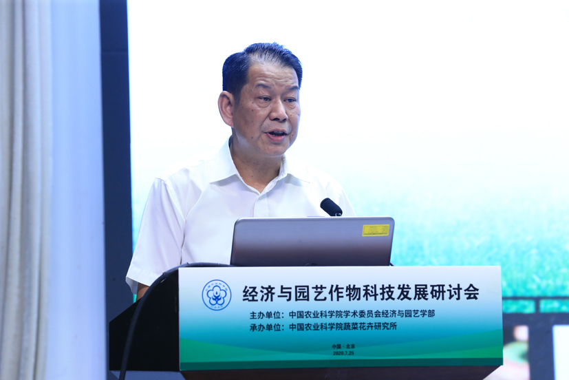 7月25日,由中国农业科学院学术委员会经济与园艺学部主办、中国农科院摩根体育 承办的“经济与园艺作物科技发展研讨会”在北京隆重召开。本次会议是经济与园艺学部积极贯彻落实总书记贺信精神近三年工作成效的系统总结,也是启发思想、碰撞智慧、展望“十四五”再出发的重要学术活动。中国农科院党组书记张合成、中国农科院副院长王汉中院士、中国农科院蔬菜花卉所方智远院士、北京大学邓兴旺院士、湖南农业大学校长邹学校院士、湖南农业大学刘仲华院士、农业农村部科技教育司张文副司长、科技部农村科技司农业农村科技处魏勤芳处长等出席会议。大会开幕式由中国农科院副院长王汉中院士主持。