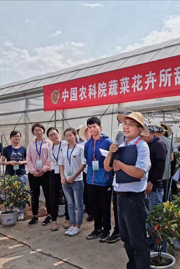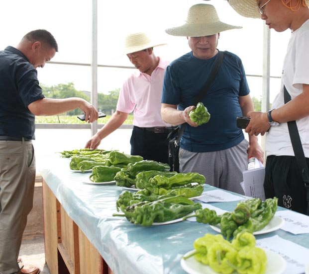 火热的天气映衬红火的事业。6月13日,由中蔬种业科技(北京)有限公司、摩根体育官网 联合举办的“中椒”系列新品种展示会在中国农科院南口中试基地举行。来自北京、山东、湖北、云南、河北、山西等10余个省份的种子企业和科研单位50余人参会。田间展示会在辣椒课题组育种团队的引导下顺利开展,室内会议上王立浩研究员向全国经销商介绍了“中椒”品种的育种过程、新育品种和合作理念。