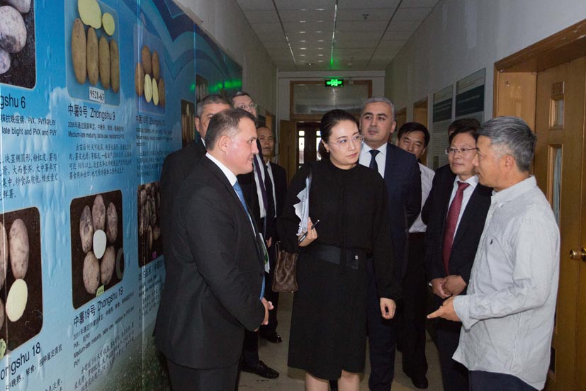 随后,哈伊托夫一行在张圣平副所长的陪同下参观了马铃薯育种与栽培实验室,在卞春松副研究员的详细讲解下,对研究所在马铃薯育种与栽培领域的研究成果有了更加深入的了解,由其是马铃薯脱毒技术。哈伊托夫表示马铃薯是乌兹别克斯坦的重要粮食作物,种植面积逐年增长,希望能与中方在蔬菜花卉领域加强合作、积极交流、增进互访,实现中乌合作共赢,和谐发展。