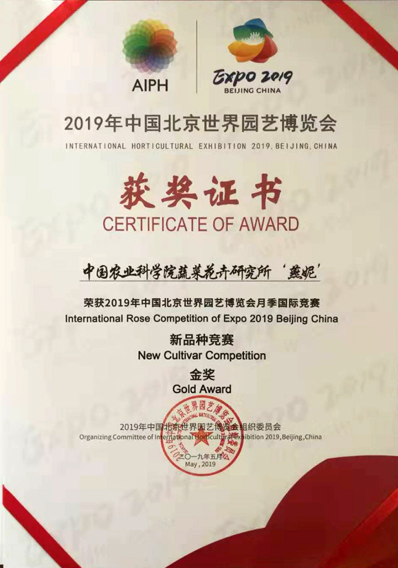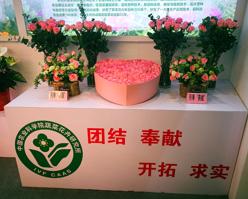 世园会展会期间,本所组织人员平均7-10天赴中国农业科学院展区进行展区布置、展品维护和更换等工作,累计往返延庆世园会会场200余人次。蔬菜花卉所自主培育的月季、牡丹、火鹤、百合、菊花等20多个花卉新品种先后亮相世园会中国农业科学院展区,获得花卉同行专家的高度评价和观众们的热烈好评。在国际专类竞赛和中国室内展品竞赛中荣获18个奖项,其中3个特等奖、6个金奖、4个银奖、5个铜奖。切花月季新品种‘燕妮’作为布展时间最长的展品材料,全程供应和布置世园会中国农业科学院展区,并与盆栽牡丹新品种‘秾苑淑女’分别荣获月季国际竞赛新品种竞赛金奖和牡丹国际竞赛新品种竞赛特等奖。切花菊‘燕华晴雪’和切花百合‘丹蝶’荣获中国室内展品竞赛切花类特等奖。切花月季‘燕妮’、切花百合‘京鹤’、切花菊‘燕华点褐’、小菊新品种‘粉蝶’和亨利兜兰还分别荣获中国室内展品竞赛切花类或盆栽类金奖。此外,还有9个菊花和百合等花卉新品种获得中国室内展品竞赛切花类或盆栽类银奖或铜奖。由于我所自主知识产权花卉新品种在展会期间的优异表现,中国农业科学院展区荣获2019年中国北京世界园艺博览会“最佳特色奖”。