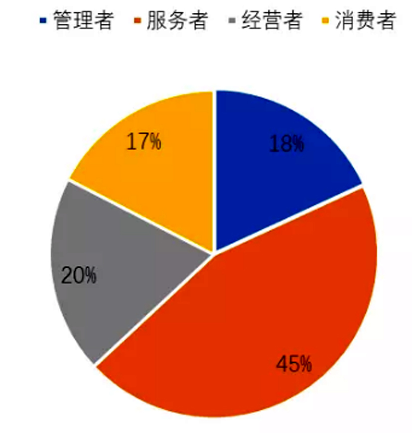 就调查对象的分布结果看,服务者占比最大,为 45%;经营者、管理者和消费者占比较为接近,分别为 20%、18%和 17%。调查样本分布较为均衡,样本数量充足,为准确把握当下总体状况提供了可靠依据。