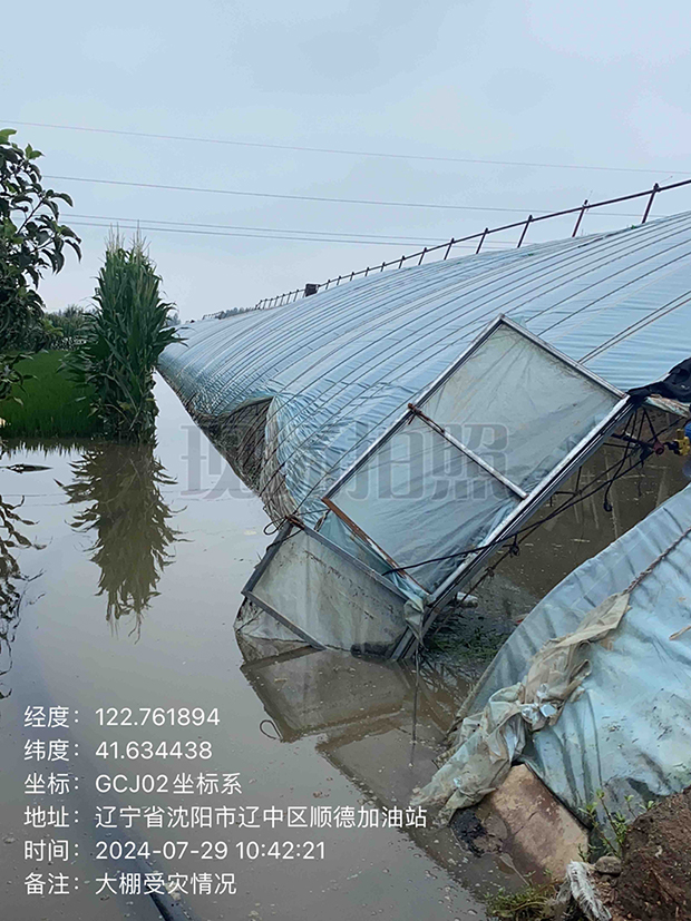 7月下旬以来,沈阳市迎来持续降雨天气,出现自1951年气象观测记录以来最强降水,全市23个气象站突破历史极值,其中沈阳市辽中区降水最多,7月25日~28日平均降水量241.6mm,最大值556.1mm,最大小时降水量82.4mm。再加上蒲河和浑河等上游河流泄洪,导致位于沿河附近的于洪区马三家街道,新民市法哈牛镇、大民屯镇,辽中区养士堡镇、刘二堡镇、茨榆坨镇、朱家房镇、余家房镇、肖寨门镇等日光温室蔬菜生产基地水涝灾害严重。