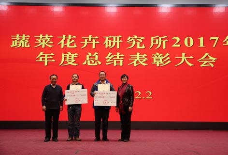 2月2日,蔬菜花卉所召开了2017年总结表彰大会暨2018年迎新春团拜会。所长孙日飞作总结讲话,本次会议由副所长胡鸿主持。