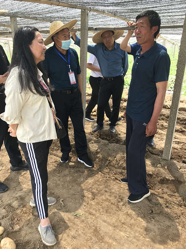 “中薯5号”的育成人、刚刚喜获全国创新争先奖奖章的金黎平介绍,早熟马铃薯菜用品质好,经济效益高,发展早熟马铃薯种植不仅可以保障马铃薯周年供应,更有助于农民增收致富。“中薯5号”,产量潜力大,晚疫病抗性好,适应范围广,是我国自主早熟马铃薯品种的突出代表,深受种植户欢迎。她同时强调,没有完美的品种,针对“中薯5号”芽眼较深的不足,团队通过多年努力已经培育出一批与“中薯5号”产量接近、外观品质更好的早熟多抗优质的新品种,其中“中薯早35”、“中薯早43”和“中薯早47”等新品种在昌黎进行了展示,中薯系列马铃薯品种后浪追前浪,深受广大种植户好评。