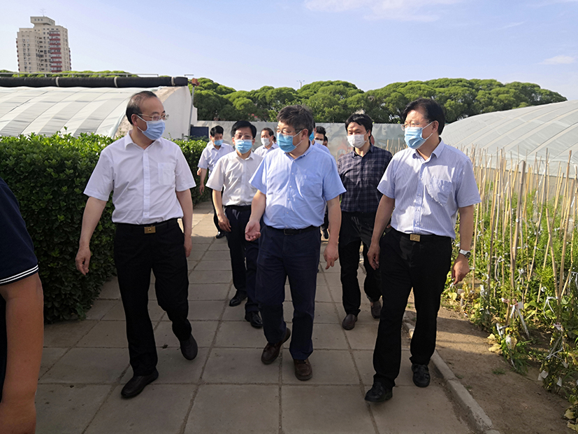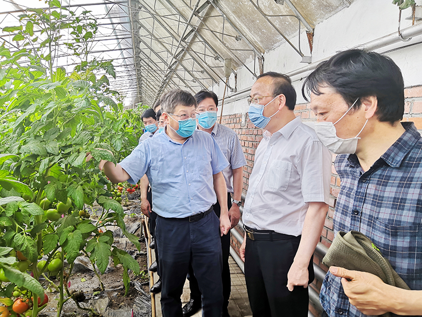 6月4日下午,安徽省滁州市市委书记张祥安一行到我所调研指导,参观所南区试验基地,考察蔬菜新品种选育推广、设施栽培技术等情况。中国农业科学院副院长刘现武、院成果转化局局长王述民、摩根体育 所长张友军等陪同调研。