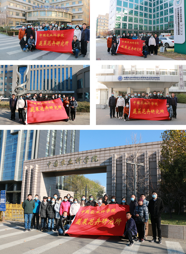 伴着冬日的暖阳,活动人员从所外美丽的柳荫大道向西出发,途径研究生院、饲料所、环发所、院西门、信息所、生物所、质标所、作物所、区划所共9个打卡地点,每到一处持所旗进行集体合影,最后返回研究所。