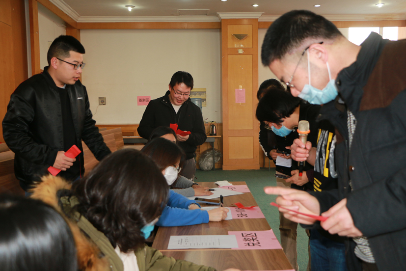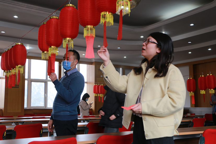 与传统的猜灯谜不同,活动所选的210个谜题中有180个是由我院职工围绕院科技创新、院所发展相关内容进行的原创,谜面简练、生动,谜作健康生动,富有新意。在红灯笼的衬托下,所报告厅内 “年味儿”十足。伴着欢快的背景音乐,工会主席张圣平向大家送去了元宵佳节的祝福并宣布活动开始。