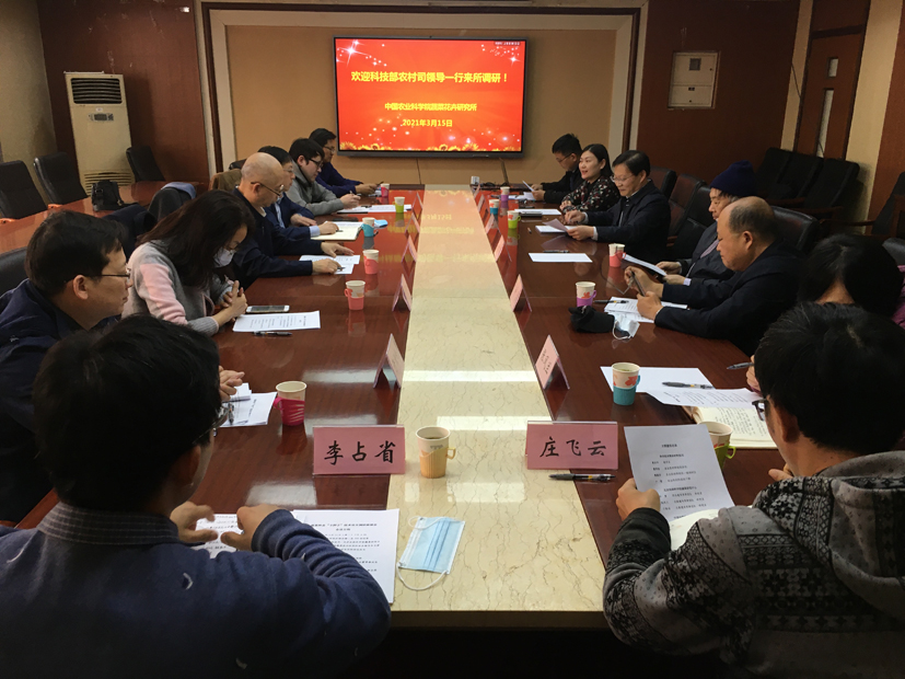 3月15日,科技部农村科技司蒋丹平副司长、农业农村科技处霍季春处长等一行到摩根体育 就蔬菜种业“卡脖子”技术攻关进行调研。蔬菜花卉所方智远院士、中国农科院科技局熊明民副局长、蔬菜花卉所所长张友军、副所长张圣平陪同调研。李蕾处长主持调研会。