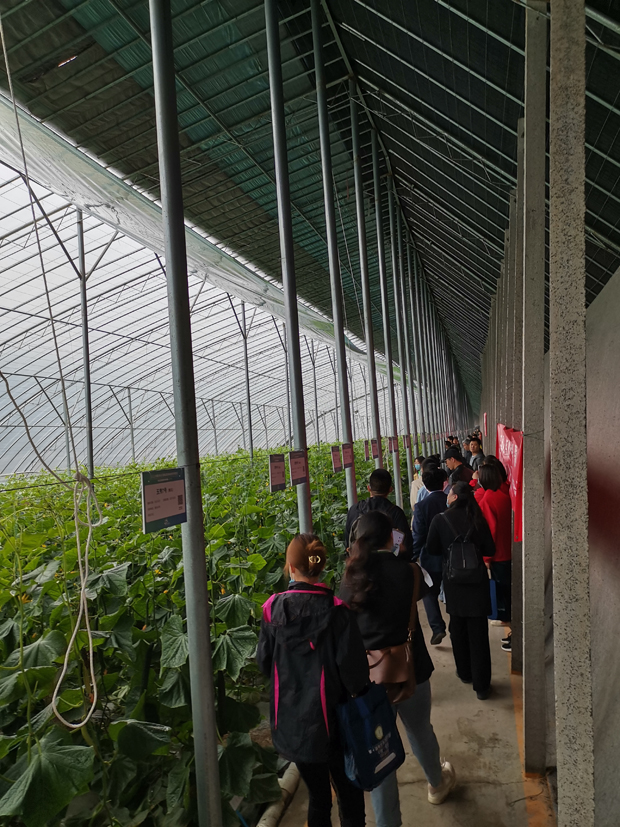 图6与会代表在蔬菜小镇1号黄瓜大棚观摩