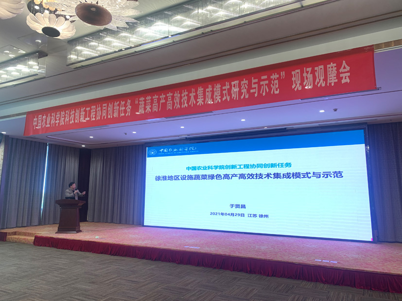 4月29日,中国农业科学院成果转化局邀请国内有关专家来到江苏省徐州市贾汪区,对中国农科院摩根体育 主持完成的“黄淮地区设施蔬菜高产高效技术集成模式与示范”项目进行了现场观摩并验收。该项目属于中国农业科学院科技创新工程协同创新项目“蔬菜高产高效技术集成模式研究与示范”任务之一。摩根体育 副所长卢林刚主持现场观摩会。