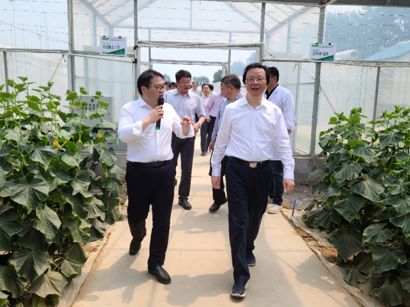 5月13日上午,农业农村部党组成员、中国农业科学院院长唐华俊,农业农村部种植业管理司副司长朱恩林,山东省农业农村厅厅长李希信等领导到研发中心调研。中国农科院蔬菜花卉所所长张友军,潍坊市委副书记、市长刘运,寿光市委书记赵绪春,寿光市委副书记、市长李鹏等领导陪同。