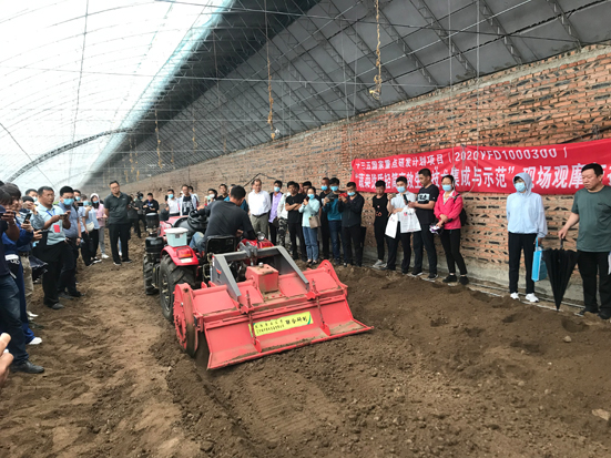 25日上午,在北票市东官镇海丰设施农业园区、五间房镇科技示范园,集中演示了沈阳农业大学田素博团队研制的深旋机和旋耕起垄铺滴灌覆膜一体机,中国农业大学宋卫堂团队研制的履带式多功能作业平台车,摩根体育官网 李宝聚团队研制的精量电动弥粉机,北京市农林科学院乔晓军团队研制的臭氧植保机、郭文忠团队研制的精准灌溉施肥系统,农业农村部南京农业机械化研究所陈永生团队研制的高密度精密蔬菜灭茬机,以及来自悦田、井关、禾田、亚美柯、鼎铎等农机知名企业的日光温室用小型撒肥机、深翻机、震动式深松机、穴盘苗移栽机等,现场展示了摩根体育官网 创建的蔬菜集约化育苗技术、沈阳农业大学孙周平团队研发的日光温室番茄与黄瓜宜机化东西垄种植模式与管理技术、刘兴安团队开发的适宜农机具进出日光温室的骨架活动门,以及基于温室环境智能监测的自动防风、卷帘系统等,实地听取了种植户的意见和建议。