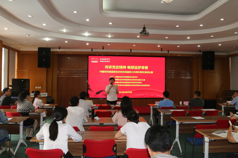 为热烈庆祝中国共产党成立100周年,全面贯彻落实习近平总书记“四个面向”、“两个一流”指示精神,展示蔬菜花卉所青年职工开展党史学习教育工作的阶段性成果,鼓励青年科技人才开拓创新,在研究所党委办公室、科研处的倾力支持下,所青协和团支部共同举办了以“传承党史精神 畅想追梦青春”为主题的青年演讲比赛。11位参赛选手满怀真挚的情感,用最优美的语言,赞颂党的百年征程,畅想追梦青春。所长张友军、党委书记周霞、副所长卢林纲出席活动。