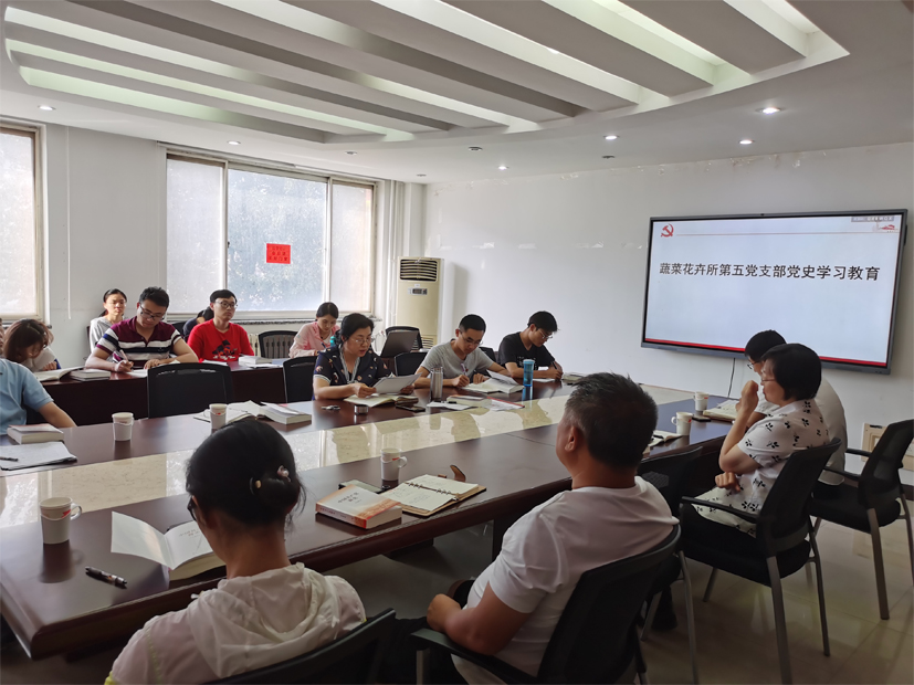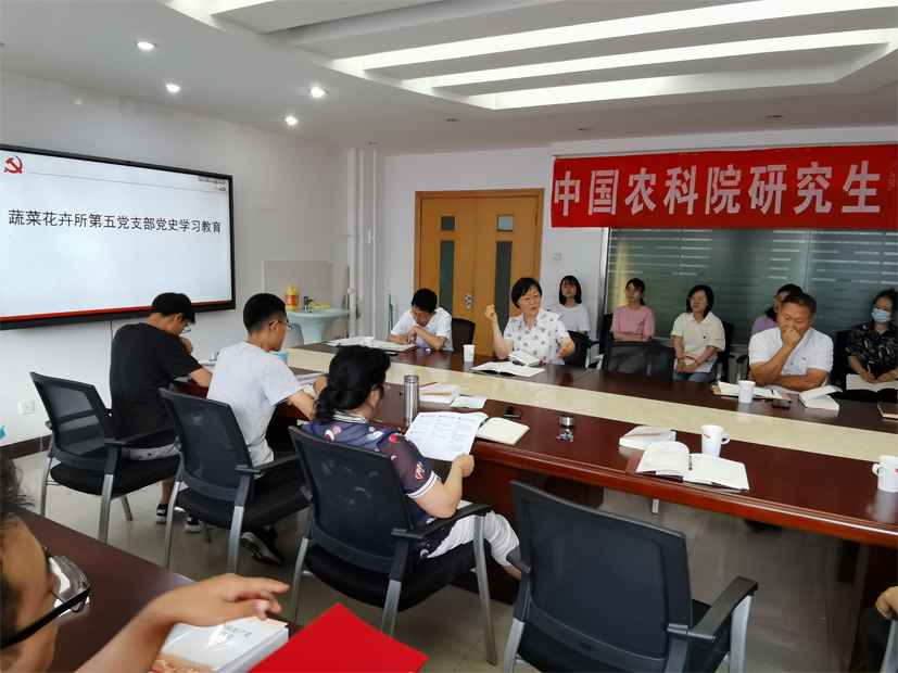 按照院党组、所党委关于党史学习教育的安排部署,蔬菜花卉所第五党支部开展了党史学习教育主题党日活动,邀请周霞书记为全体党员讲党史,支部书记顾兴芳讲党史及支部党员和积极分子讲党史。