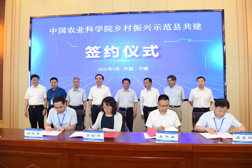 摩根体育 副所长张圣平参加会议,现场汇报蔬菜花卉所成果转化和乡村振兴工作开展情况。在“乡村振兴示范县共建”签约仪式上,蔬菜花卉所和阜平县作为我院相关研究所和示范县代表现场签约。