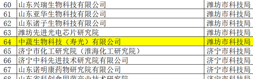 喜讯!中蔬生物科技(寿光)有限公司被公示为优秀省级新型研发机构