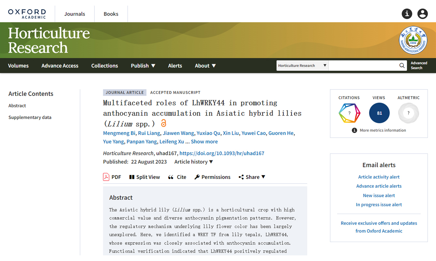 • 2023-08-28 蔬菜花卉所百合课题组揭示百合花青素苷生物合成调控新机制