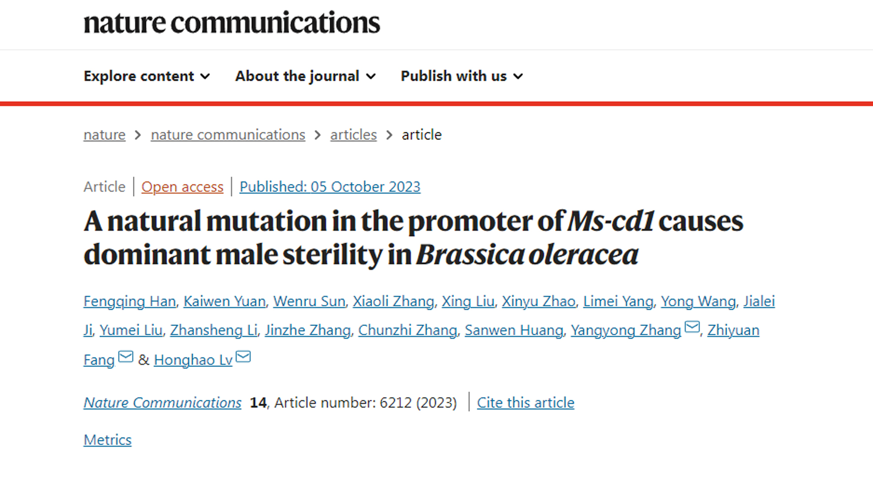• 2023-10-06 甘蓝青花菜课题组揭示显性雄性不育的遗传调控机制