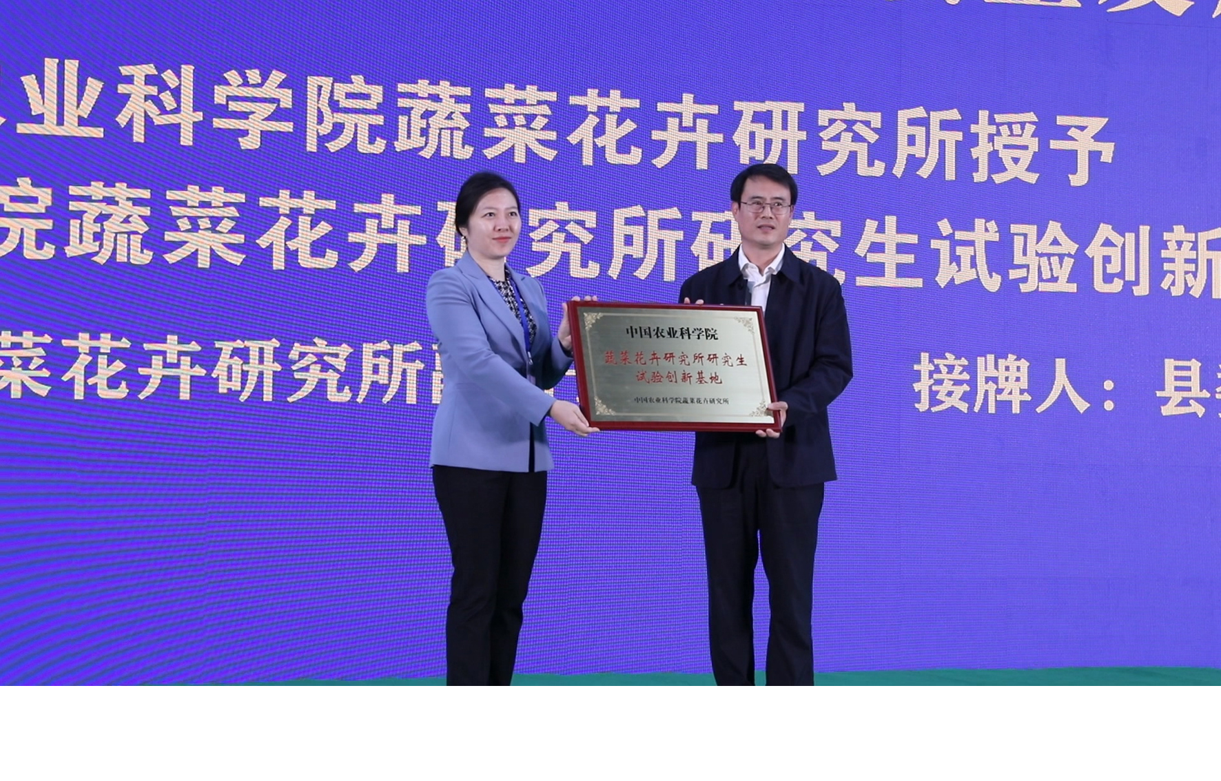 10月21日—22日,首届京津冀露地蔬菜产业创新大会暨2023玉田供京蔬菜高质量发展大会在玉田县召开。蔬菜花卉所副所长翟研宁出席大会并为玉田县“摩根体育官网 研究生试验创新基地”授牌。