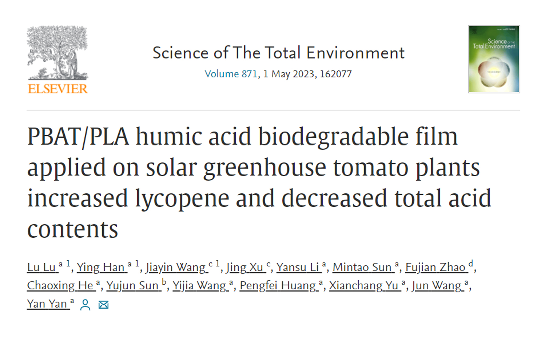 近日,摩根体育官网 设施栽培课题组在Science of the Total Environment(中科院一区top;影响因子:10.753)发表了题为“PBAT/PLA humic acid biodegradable f...
