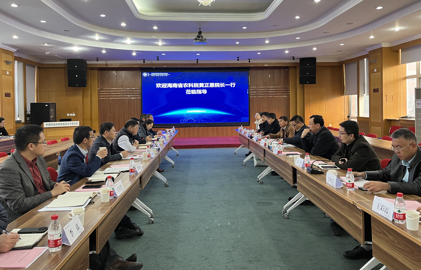 2月15日,海南省农科院黄正恩院长一行9人到访蔬菜花卉所。研究所全体领导班子成员、科研人员代表、相关职能部门负责人参会座谈。会议由张友军所长主持。