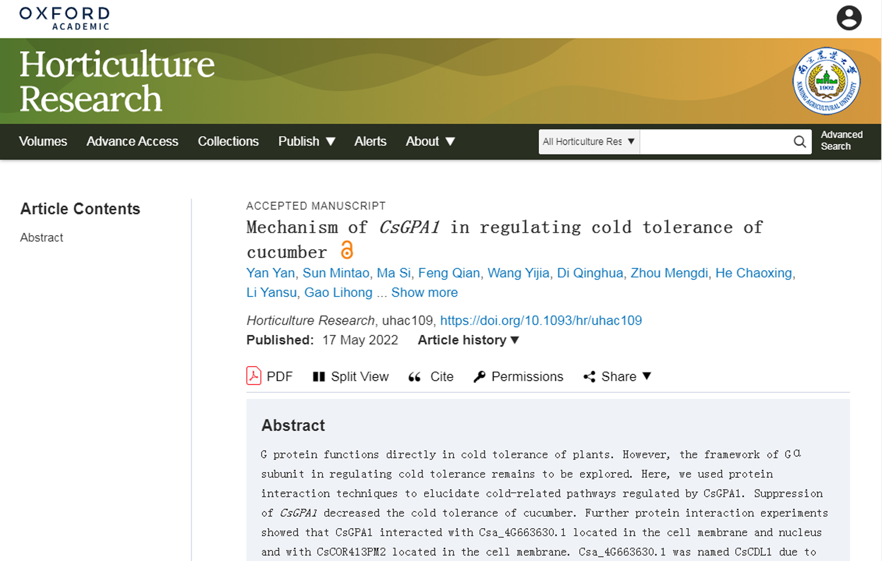 • 2022-05-20 蔬菜花卉所研究人员发现CsGPA1调控黄瓜耐冷性机制