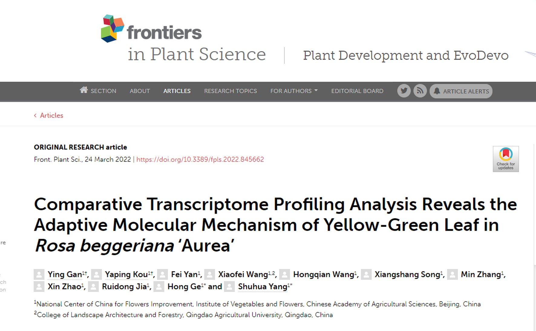 • 2022-06-30 蔬菜花卉所初步解析蔷薇金色叶性状形成的分子机制