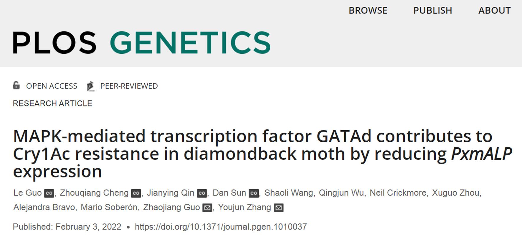 • 2022-02-07 我所张友军团队揭示小菜蛾Bt抗性转录调控新机制