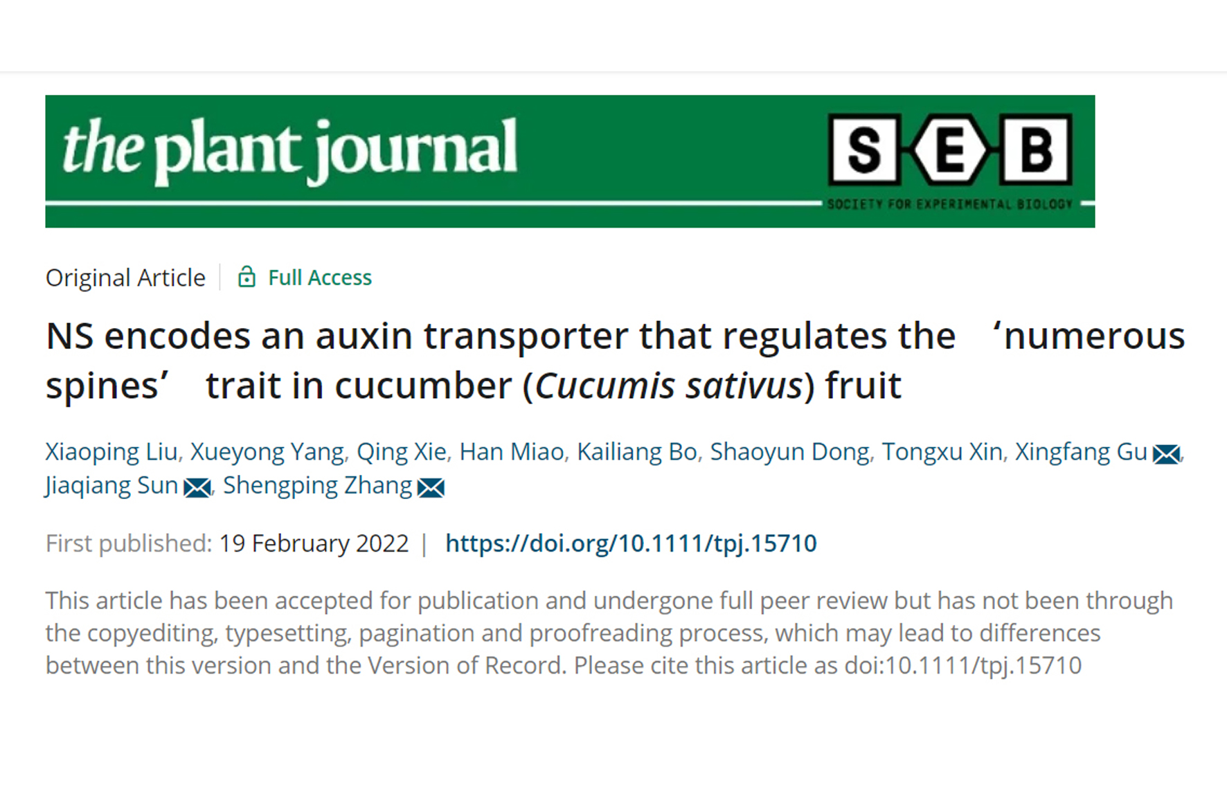 近日,摩根体育官网 葫芦科蔬菜遗传育种创新团队和蔬菜功能基因组创新团队合作在黄瓜果刺生长发育调控研究上取得重要进展。该研究通过基因编辑和转基因验证了NS基因调控黄瓜果实多刺这一重要外观品质性状,完善了果刺生长发育的调控途径。相...