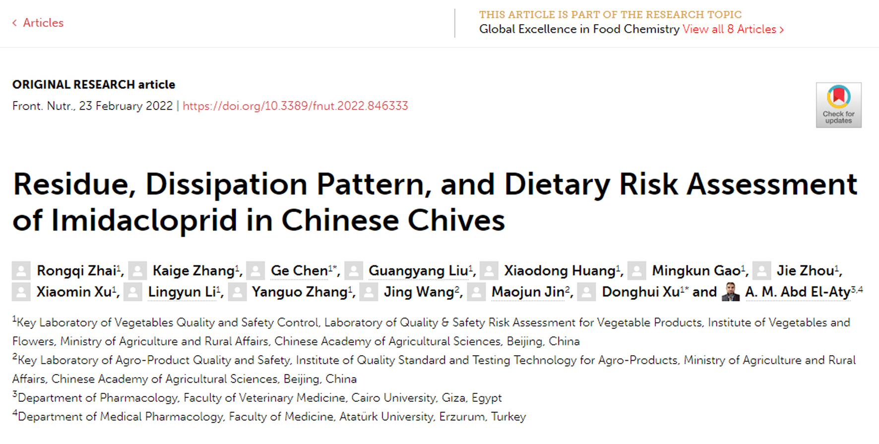 • 2022-04-21 农业农村部蔬菜质量安全控制重点实验室在农业化学污染物高效识别与精准检测技术研发方面取得新进展