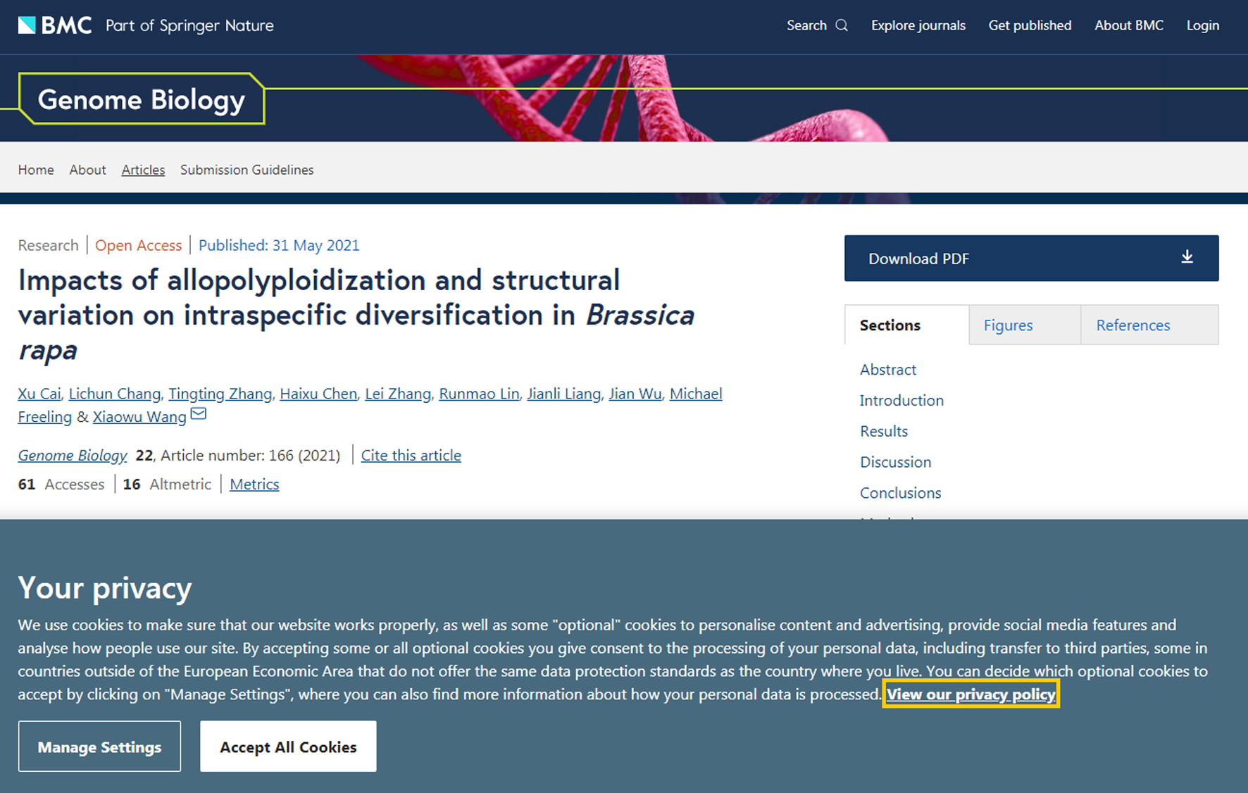 2021年5月31日,Genome Biology(IF3y=12.683)在线发表了摩根体育官网 王晓武团队完成的题为“Impacts of allopolyploidization and structural varia...