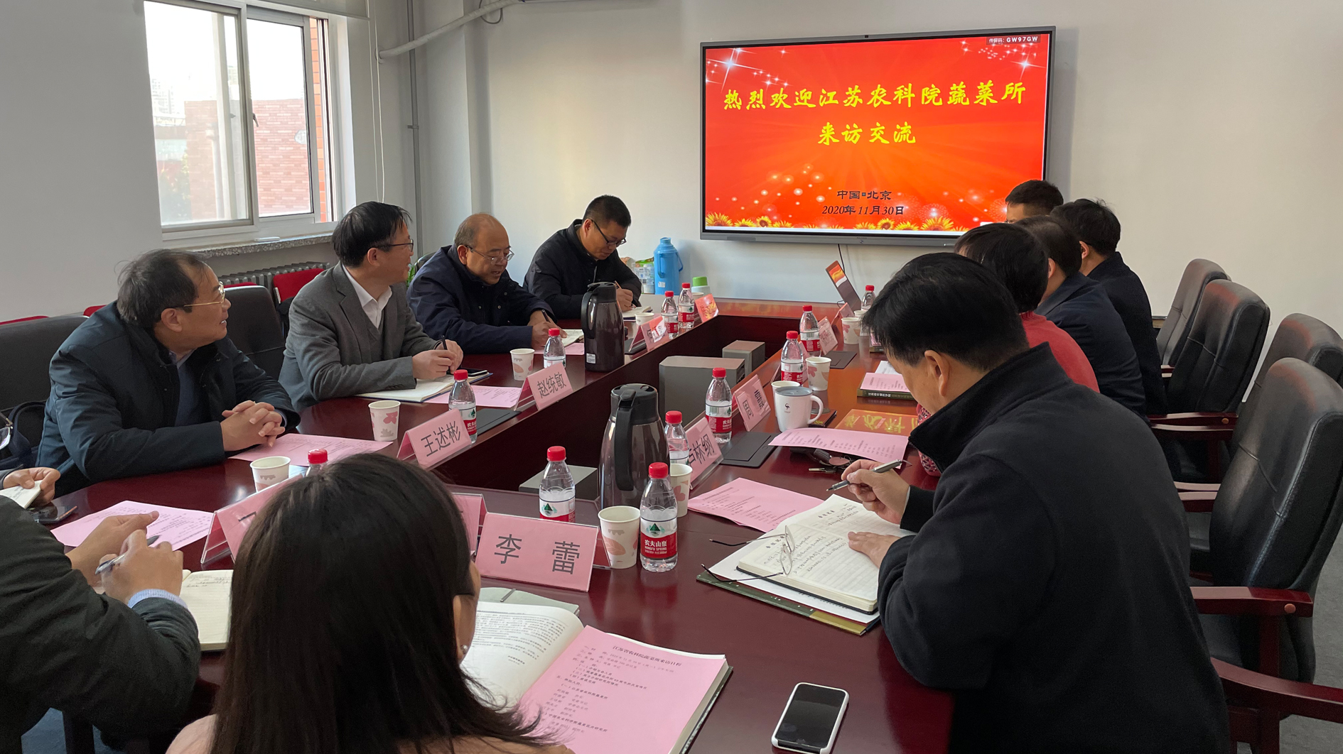 11月30日,江苏省农科院蔬菜所所长赵统敏等一行5人到我所交流访问,所领导班子成员、相关处室负责人出席,党委书记周霞主持会议。
