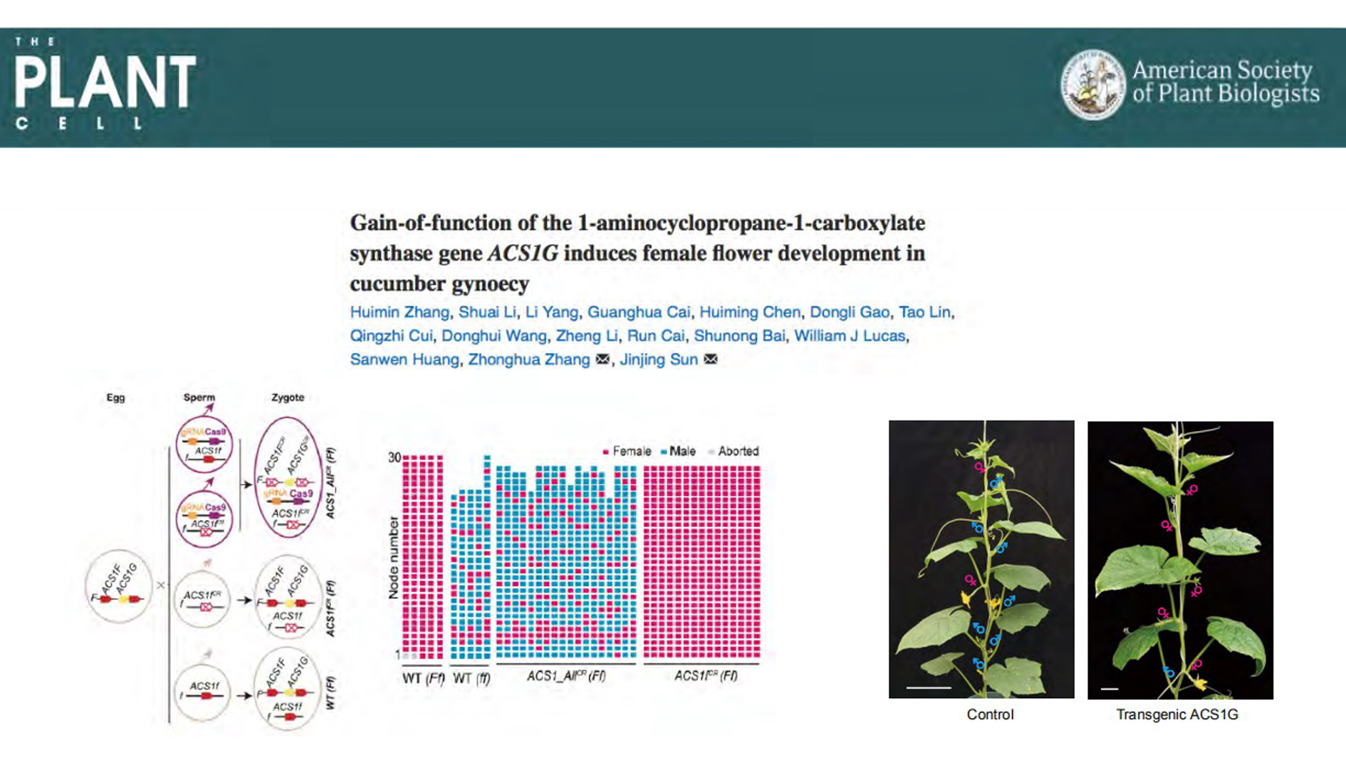 近期,摩根体育官网 功能基因课题组首次证实了黄瓜中显性全雌基因(Female)编码乙烯合成途径中的关键酶ACS1G,并深入研究了其作用机制。相关研究内容《Gain-of-function of the 1-aminocyclo...