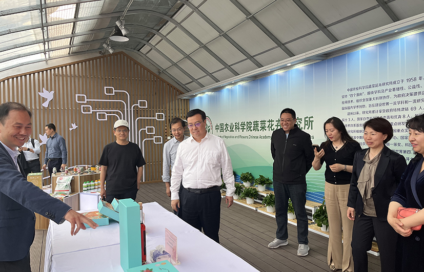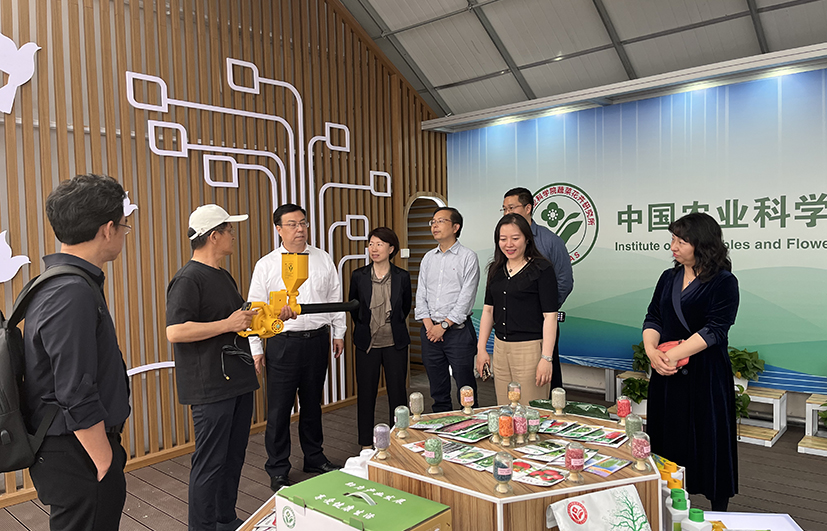 会后,王进军一行实地考察了蔬菜、花卉种质资源展示温室,李宝聚研究员、杨树华研究员、薄凯亮研究员和李占省研究员详细介绍了解蔬菜、花卉、植保等领域最新科技进展。