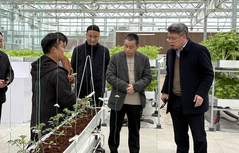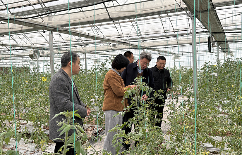座谈结束后,曾志红所长一行深入研发中心露地试验田和设施大棚调研蔬菜的生长情况,并就番茄病虫害防控和无土栽培技术等进行了指导。