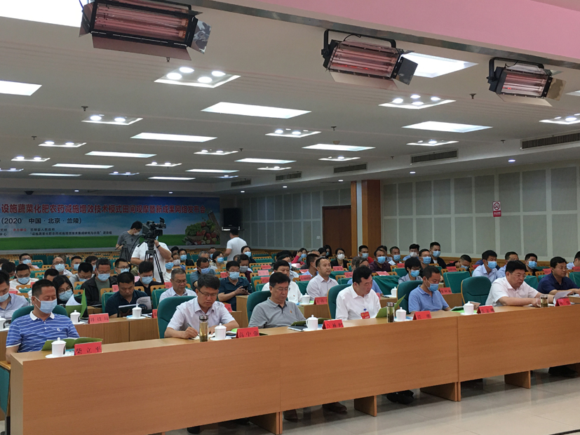 本次会议由中国农科院蔬菜花卉所和全国农业技术推广服务中心共同主办,兰陵县人民政府承办,通过“网络+视频”连线直播的形式,14项设施蔬菜化肥农药减施增效新技术在兰陵设施蔬菜生产一线经受住了考验,交出了满意的答卷。与示范前的本底相比,采用了水肥一体化精准管理、炭基生物有机肥替代及促根壮秧栽培技术以后,减少化肥养分投入量31.52%,化肥氮利用率提高15.67个百分点;采用弥粉法施药防治设施蔬菜病害技术及各类蔬菜病虫害物理、生物防控技术以后,化学药剂减量42.35%,农药利用率提高近18.95个百分点,产量没有减少,反而增加了6.32%,增效显著。