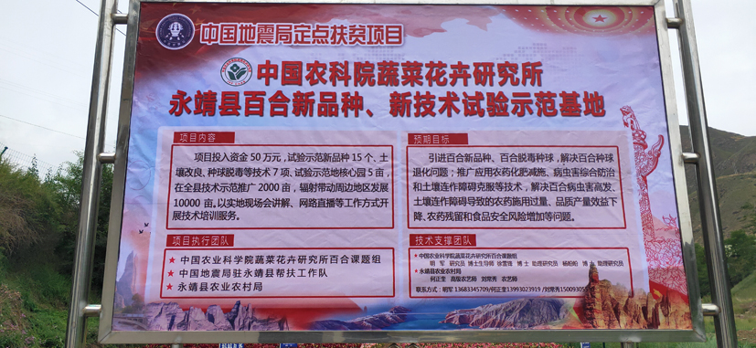 为贯彻落实中国地震局和中国农业科学院脱贫攻坚的总体部署,2020年7月30日,由中国农业科学院蔬菜花卉所组织,中国地震局永靖县定点扶贫工作组协调,永靖县农业农村局农技推广中心承办,联合甘肃省农科院等6位专家,在兰州百合核心产区永靖县徐顶乡,召开了“永靖县有机百合试验示范现场会”。永靖县委常委徐鑫副县长、农业农村局刘德胜局长、徐顶乡党委书记以及相关乡镇等相关部门领导出席会议,刘德胜局长主持。现场会包含专家技术报告、试验地现场查看和现场答疑三个议程。