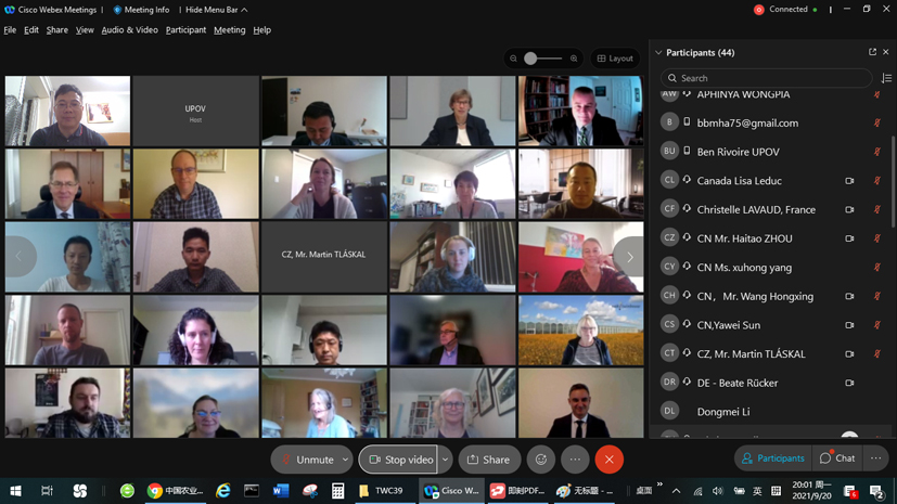 9月20-22日,国际植物新品种保护联盟(UPOV)第39届自动化与计算机程序技术工作组(TWC)会议在美国华盛顿召开。受疫情影响,本届会议继续采用视频会议方式召开。TWC主席Beate Rücker女士(德国)主持会议,美国农业部植物品种保护办公室Jeffery Haynes先生致欢迎辞并介绍美国植物品种保护情况,UPOV副秘书长Peter Button先生出席会议并致辞。来自27个国家或组织的70名代表参加会议,来自农业农村部植物新品种测试中心、分中心的16名中国代表参加会议。蔬菜花卉所派出杨坤副研究员全程参加会议。