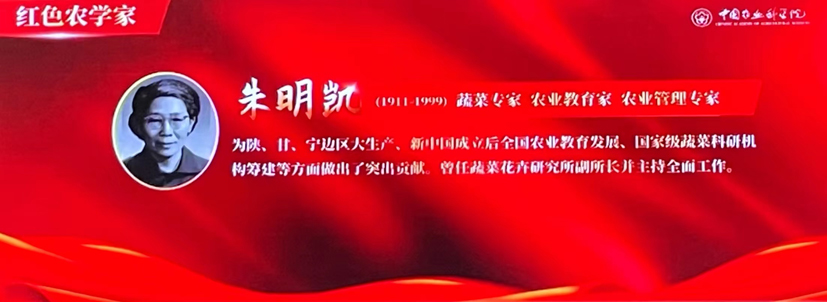 朱明凯所长既是蔬菜所的主要创始人之一,也是新中国蔬菜科研发展的奠基人之一,为祖国的园艺事业和农业科教事业作出了重要贡献。随着新中国的成长,从延安到东北再到北京,她始终坚持从事蔬菜科研事业,为我国蔬菜学科发展开创了新的纪元。曾先后任中国园艺学会、北京市蔬菜学会副理事长,《园艺学报》副主编,第二届农业部科学技术委员会委员,第三届全国人大代表,第五届北京市政协委员,1988年被列入《中国妇女名人录》,1995年被列入《绿苑巾帼》一书。