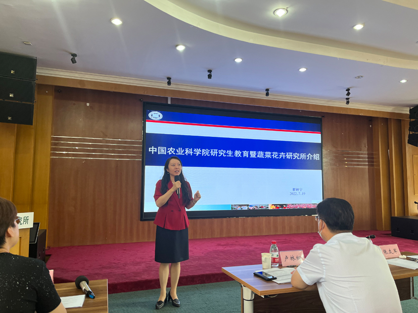 7月19日上午,翟研宁副所长从蔬菜花卉所的发展概况、科研成果、导师队伍以及研究生招生政策、奖学体系等方面作了全面的汇报。杰出毕业生代表、优秀导师郭兆将研究员,优秀毕业生翟荣启以及2022级优秀推免生代表覃旭分别作经验分享报告。他们通过讲述自身在科研成长中的经历以及取得的成果,呈现出蔬菜花卉所是一个位居学术前端、师资力量雄厚、学科培养极具特色的育人机构。