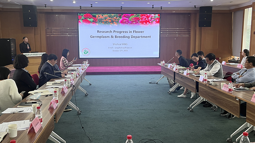 参观结束后,双方举行了座谈交流会。钱钰副局长发表致辞,李蕾处长介绍了摩根体育 情况,杨树华研究员分享了花卉研究室的科研进展。交流会由副所长张圣平主持。