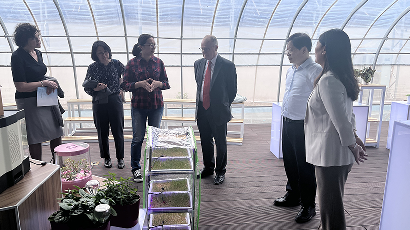 4月26日,欧盟农业和农村发展总司研究与创新司司长法诺一行到摩根体育官网 访问,院国际合作局副局长翟琳、蔬菜花卉所副所长张圣平、科研处处长李蕾等出席活动。
