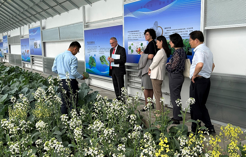 期间,法诺司长一行来到研究所南区展示温室实地考察,张圣平副所长对法诺司长一行的到访表示热烈欢迎,李蕾处长介绍了我所总体情况和国际合作概况,无土栽培课题组李强副研究员向来宾展示了设施园艺装备,对此表现出浓厚的兴趣。在张圣平副所长的陪同下,法诺司长一行还参观了花卉展示园,花卉种苗与月季育种课题组赵鑫副研究员、花卉栽培课题组袁素霞副研究员详细介绍了我所花卉资源与品种选育的情况,我所花卉育种、花期调控技术等给法诺司长留下了深刻美好的印象。来宾一行听取了薄凯亮研究员、李占省研究员关于茄科、葫芦科、十字花科等蔬菜种质资源与新品种选育的情况介绍。