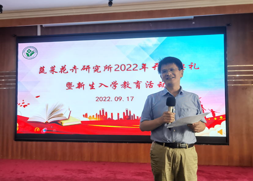 蔬菜病害防控创新团队首席李宝聚、甘蓝类蔬菜遗传育种团队首席张扬勇作为导师代表发言。他们首先祝贺新生的到来,希望同学们能够传承中蔬精神,在科研学习中,面向需求、抓住机遇、踏实训练,将解决国家农业重大问题作为努力学习的目标。鼓励同学们加强交流,注重科研综合能力的培养,严格自我时间管理、养成良好的生活习惯,同时加强提升自身综合素质。导师代表还强调了科研诚信的重要性,同时希望同学们积极向党组织靠拢。